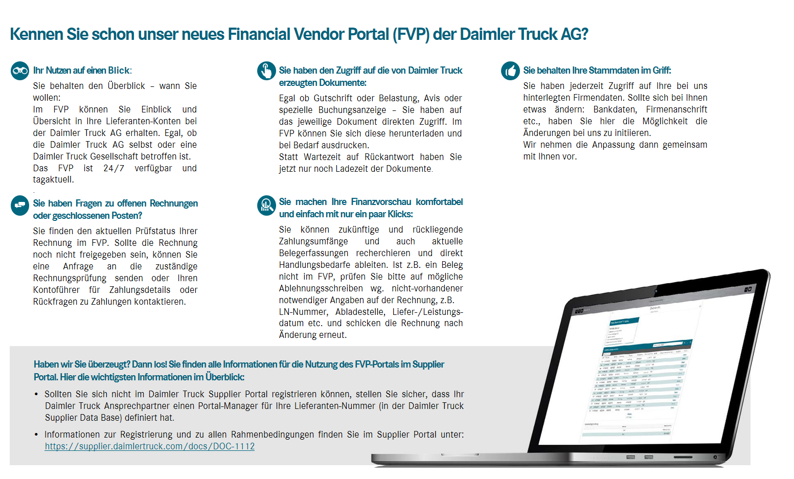 Bitte klicken Sie hier, um weitere Informationen über den Registrierungsprozess und den Zugang zum Financial Vendor Portal zu erhalten.